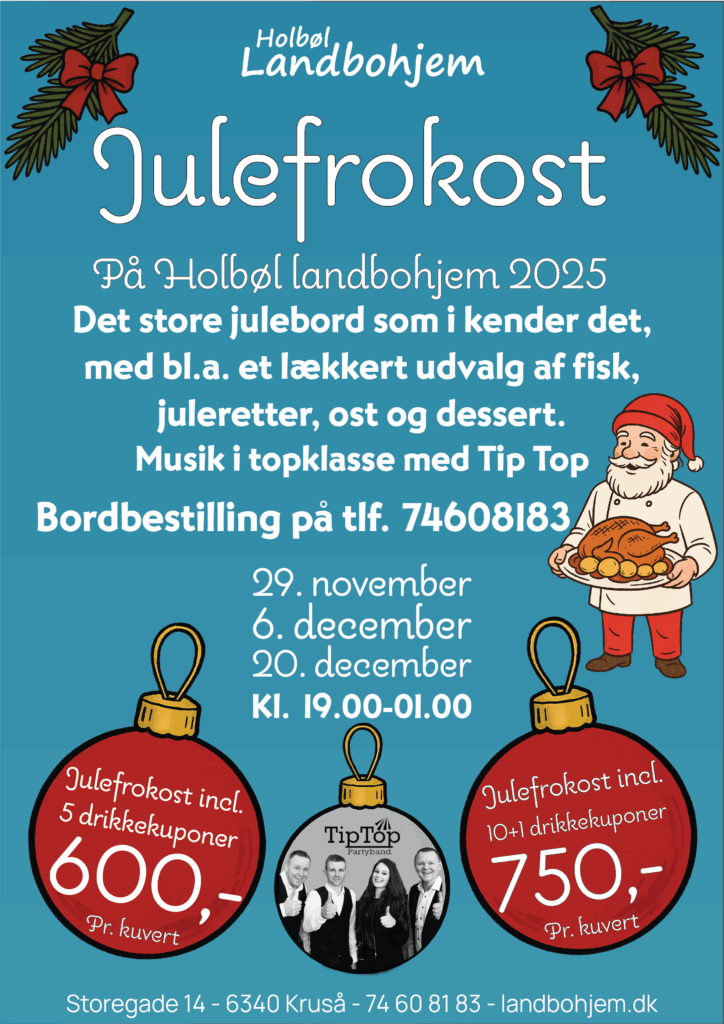 Julefrokost inkl. 10 + 1 drikkekuponer
